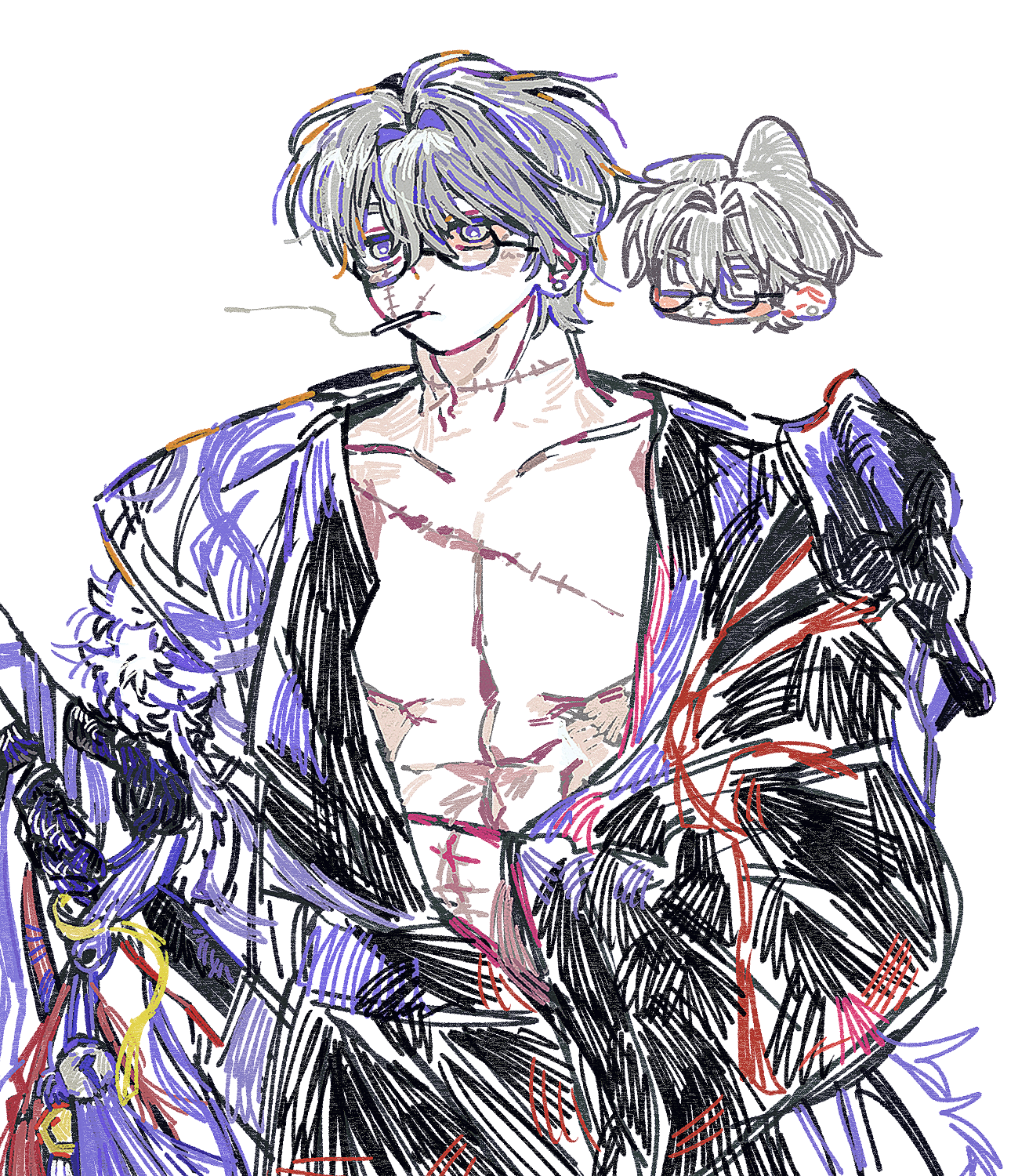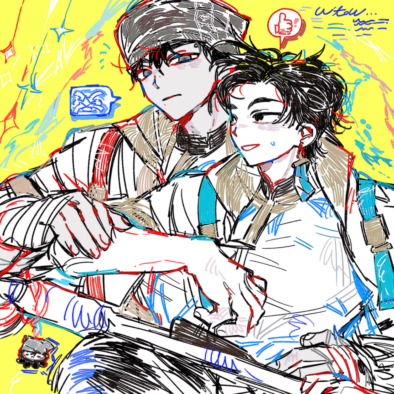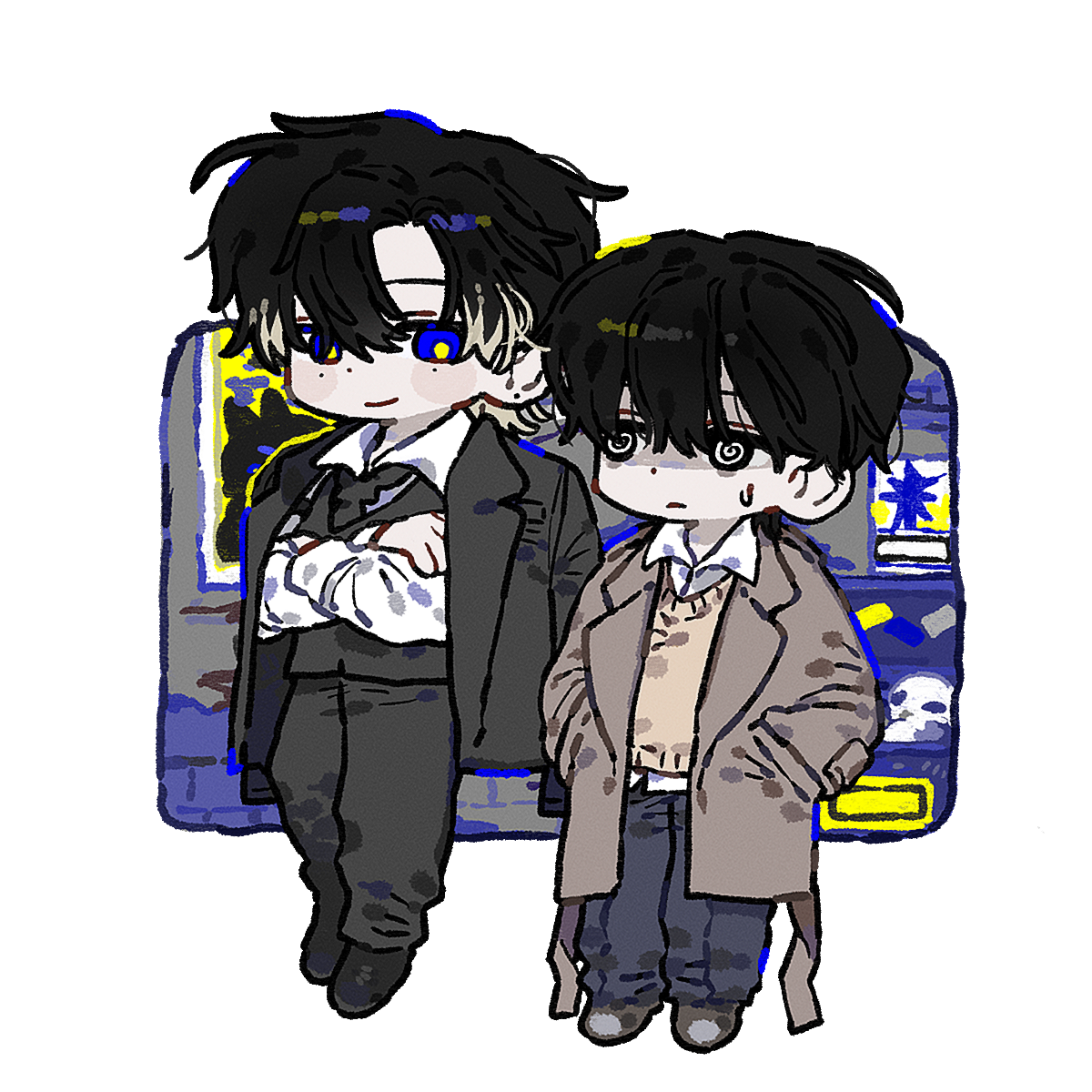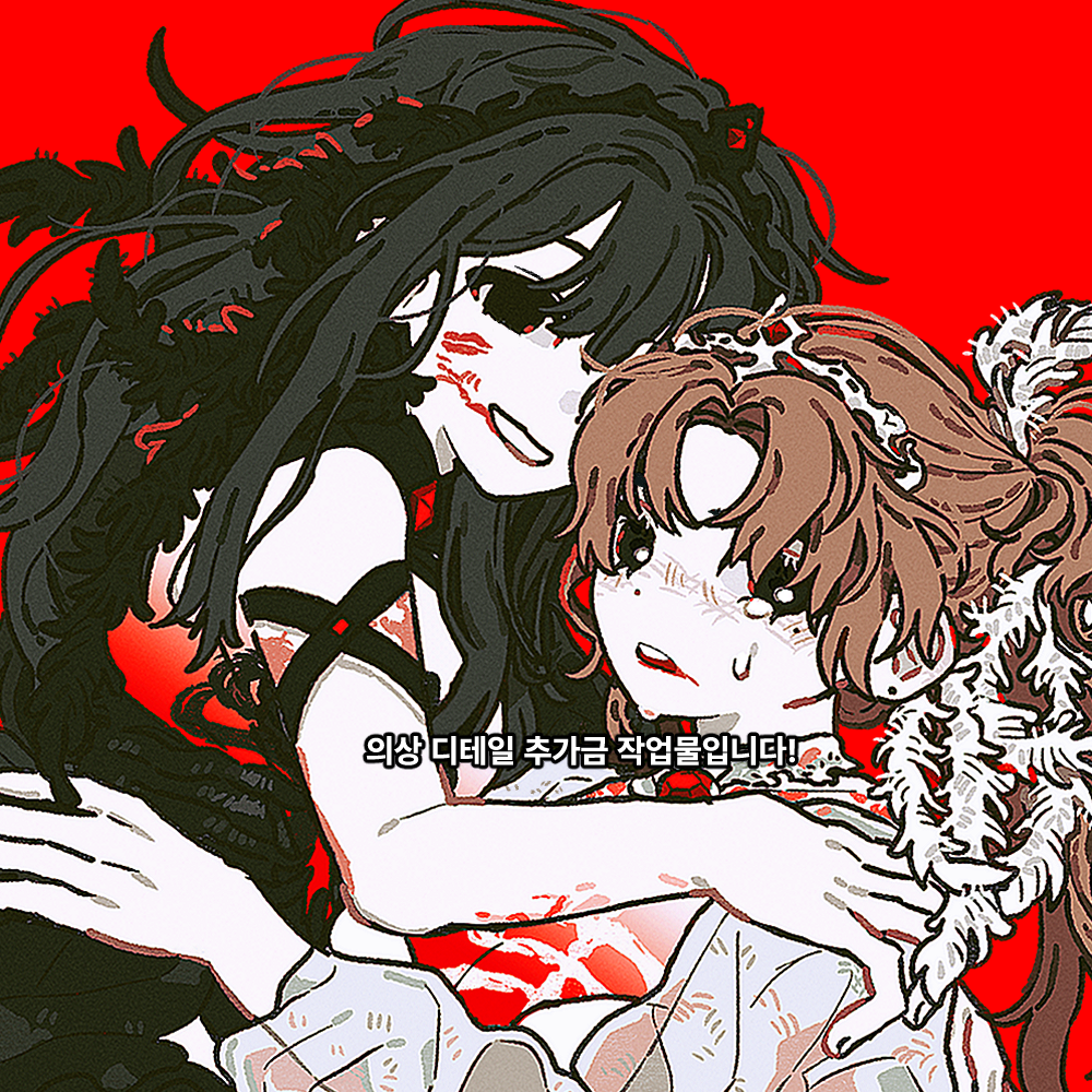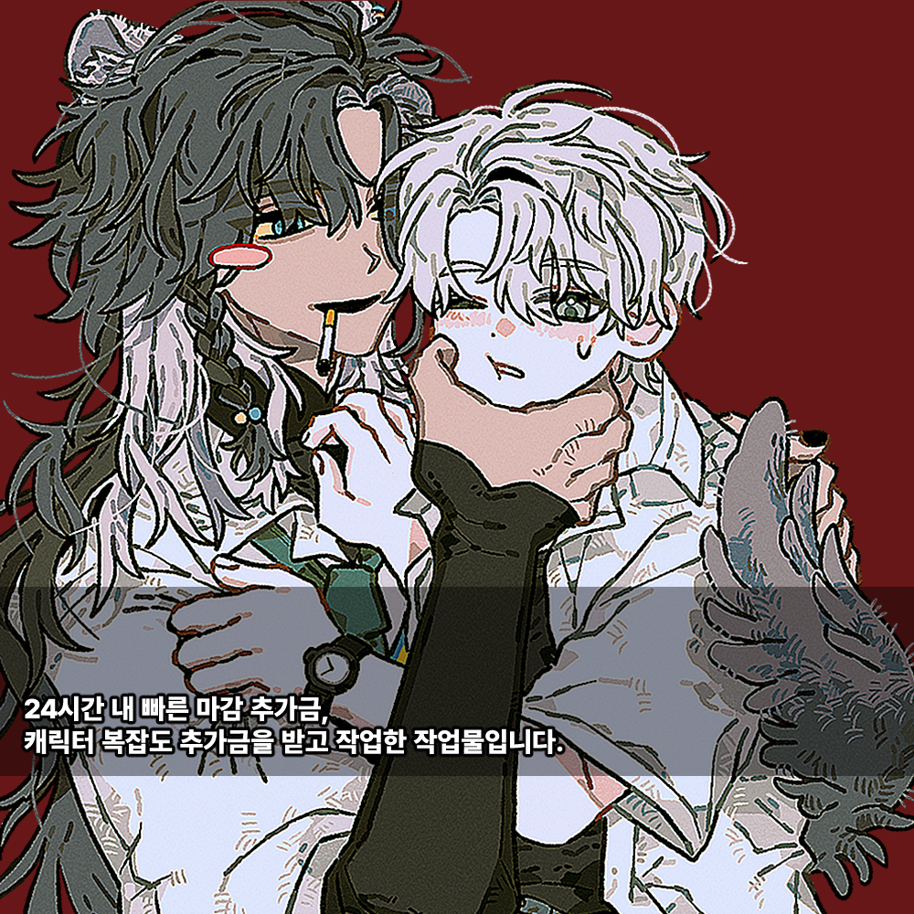 러프 1~2인 + 약간의 꾸미기 + 정돈되지 않은 채색